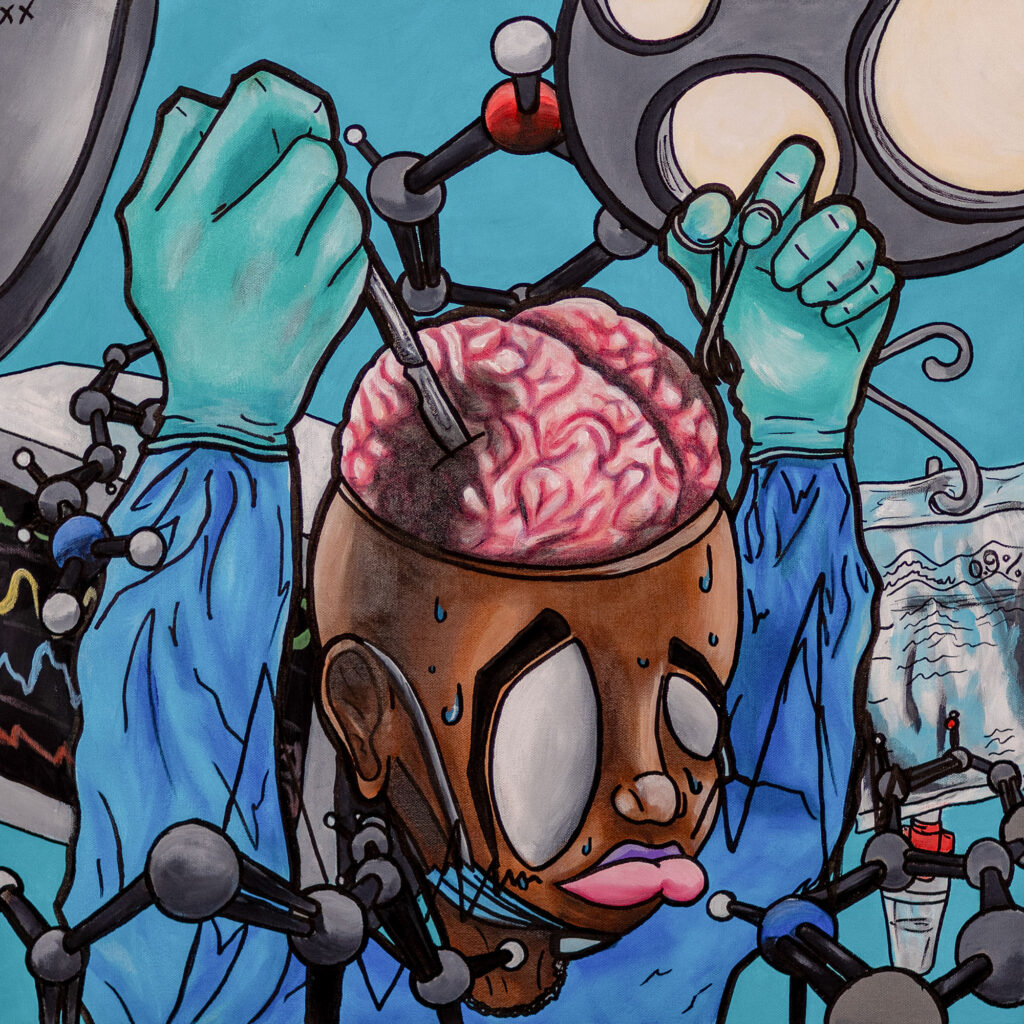 Working on Myself Currently on display at Connect Gallery as part of Words I’ve Never Said until May 22nd Title: Working on Myself Medium: Acrylic on Canvas Dimensions: 24 in x 24 in 2025 *This piece has been sold* Other works in Words I’ve Never Said 3 Body Problem Archaeology of Self Choked by Allegiance Facade I Facade II Facade III How Many Ways Can I Say Sorry? Legacy No Longer Whole Okiagari (Getting Up) Pity Party Prototype Silent Night Still Not Healed Take a Picture, It’ll Last Longer… Take It On The Chin The Crown Ain’t Worth Shit Weight