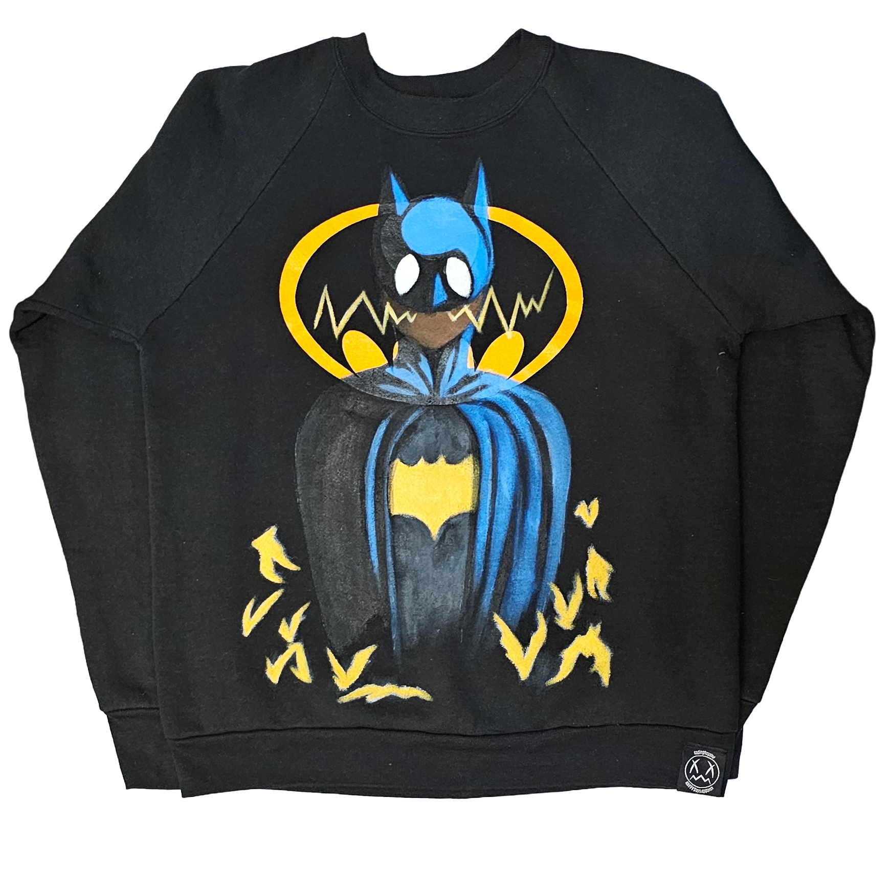 An original painting on vintage Batman sweatshirt. Size L.