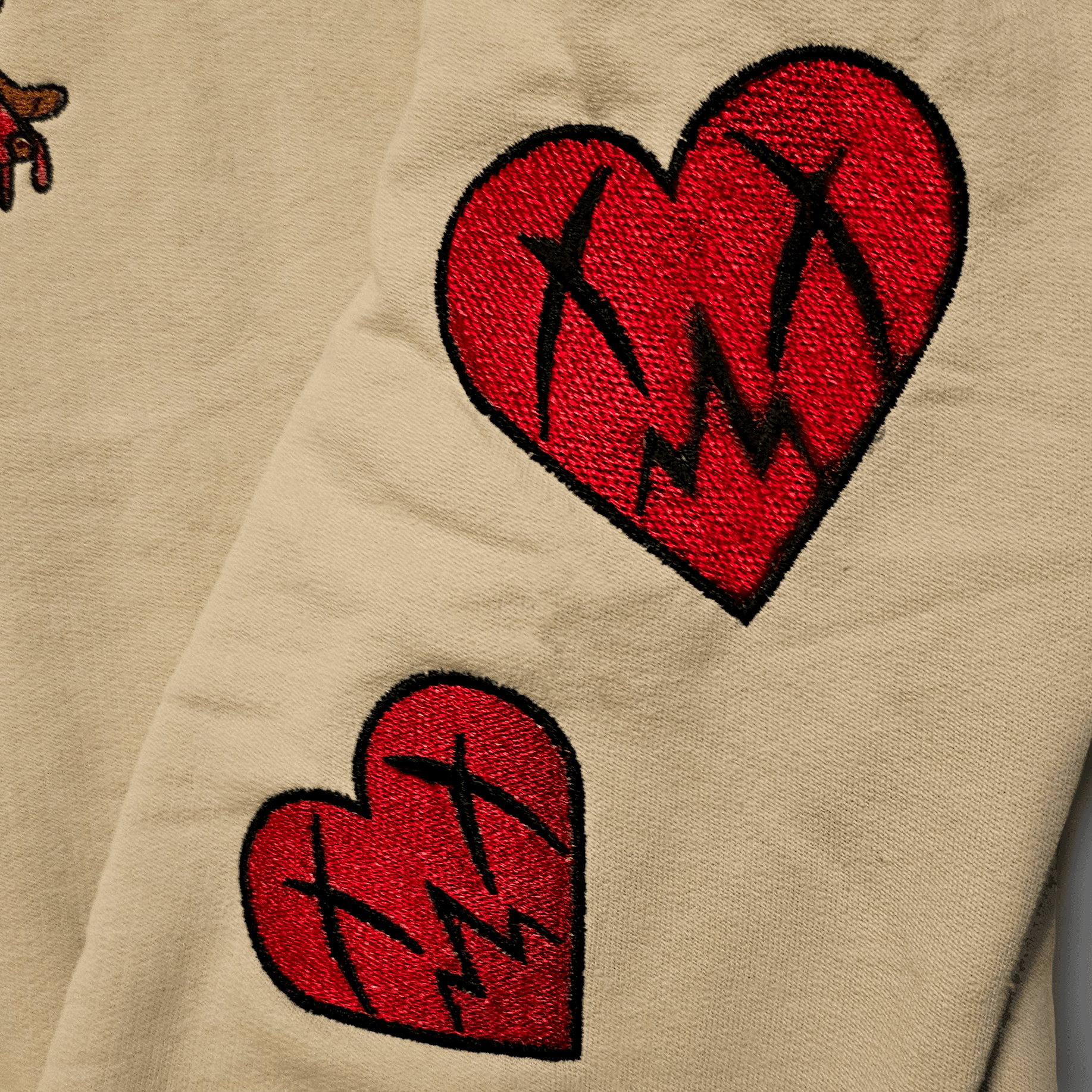 Based on the “Gift of the 808” illustration, each Bleeding Heart sweatshirt is made to order with several embroidered graphics. Embroidered images are featured on the left breast, the left sleeve, along the bottom of the front shirt panel, and the back of the collar. Each order will also include a limited edition foil trading card of “Gift of the 808”.